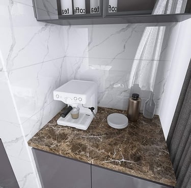 Su textura premium imita el mármol real, es fácil de instalar, resistente y muy sencillo de limpiar. La opción ideal para transformar cualquier superficie sin obras y sin gastar de más.