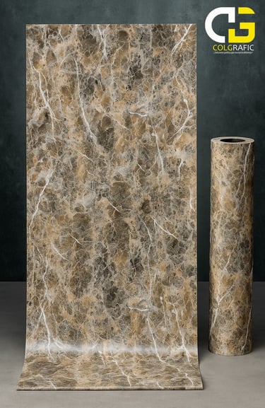 Dale un toque sofisticado y cálido a tus espacios con nuestro vinilo mármol marrón, perfecto para baños, mesones, mesas y superficies decorativas. Su acabado premium imita el mármol natural y se instala en minutos, sin obras ni altos costos.