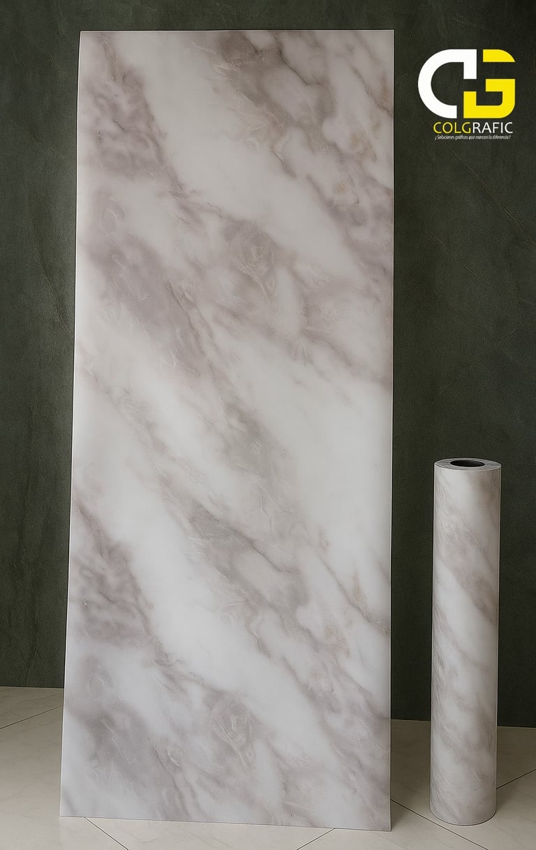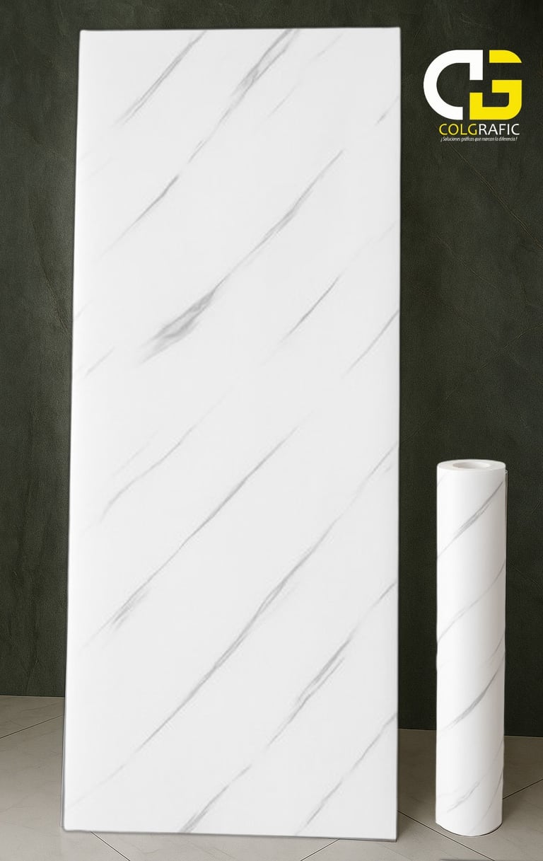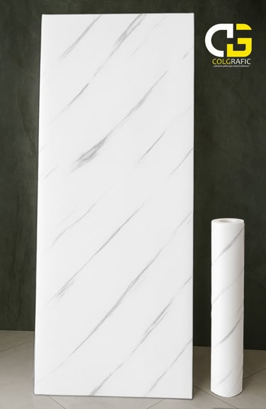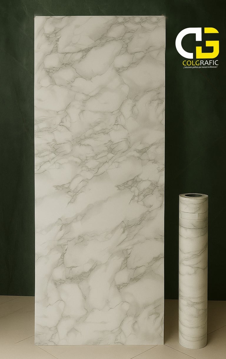 Renueva tus espacios con nuestro vinilo blanco tipo mármol, perfecto para lograr un acabado moderno, luminoso y sofisticado. Ideal para mesones, baños, cocinas y muebles.
